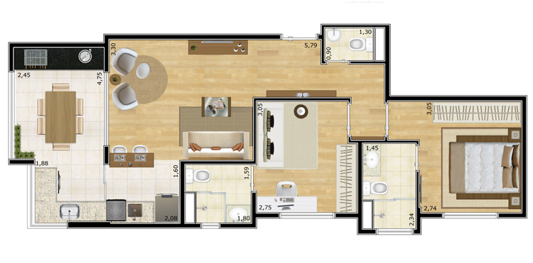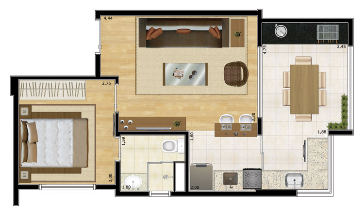 Aptos: 44 m², 48 m² e 65 m²