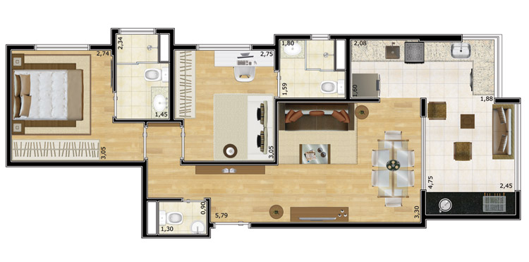 Perspectiva artística do Living